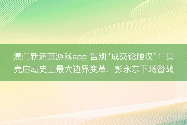 澳门新浦京游戏app 告别“成交论硬汉”:贝壳启动史上最大边界变革,彭永东下场督战