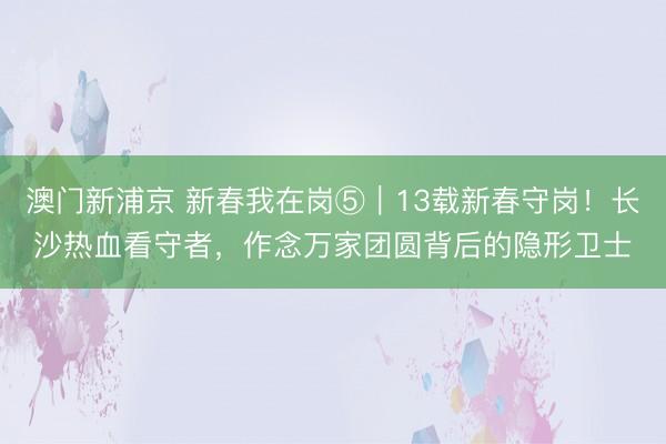 澳门新浦京 新春我在岗⑤|13载新春守岗!长沙热血看守者,作念万家团圆背后的隐形卫士