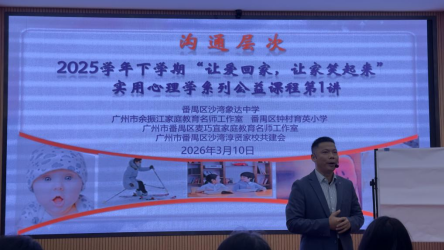 家是心灵的港湾,爱是成长的力量。2026年3月10日晚,番禺区沙湾象达中学路子教室暖意融融、观者如堵。由象达中学勾搭广州市余振江家庭教导名师责任室、广州市番禺区麦巧宜家庭教导名师责任室、钟村育英小学等单元共同举办的“让爱回家,让家笑起来”实精心境学系列公益课程首讲肃肃开讲。本次课程特邀领有丰巨室庭教导与实精心境学教学的钟村育英小学专职副文书黄锦全主讲,近300名家长怀揣对家庭成长的期待都聚一堂,共同开启一场对于爱与调换的和睦学习之旅。