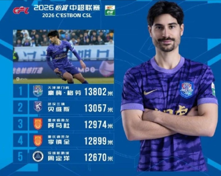 然则格劳两次参加中超单场跑动距离名次榜前五,何况第一轮还问鼎头把交椅。