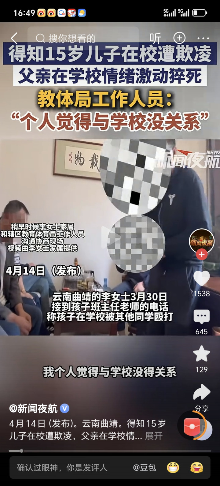 学校长入长入了什么?是东说念主命也曾法律与说念德够不到的底线?若是霸凌需要长入,那么长入依据的是兴味也曾法律呢?若是法律与兴味灵验,被霸凌孩子的父亲还会被气死吗?若是长入依据的不是说念德与法律,大致说说念德与法律措置不了问题,那么,学校长入又有什么意旨?