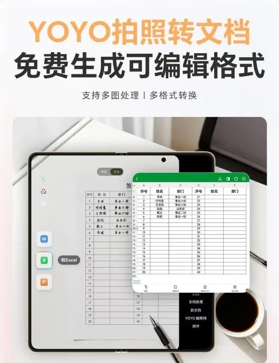 靠近一堆纸质文献、试卷,手动打字太累、扫描软件要付费——YOYO拍照转文档+试卷规复,免费无水印,纸质贵府一键变可裁剪电子档 。