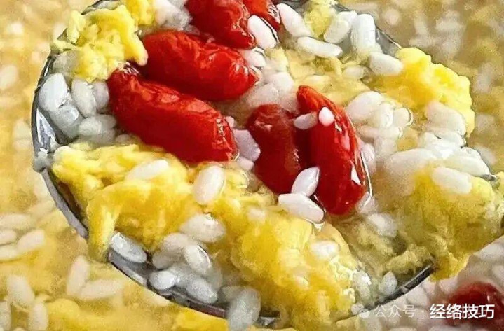 醪糟性温,能行血、散寒、通经络,红糖有助于补气血暖宫,枸杞平补肝肾,这个组合有助于补气血行血以及暖身。