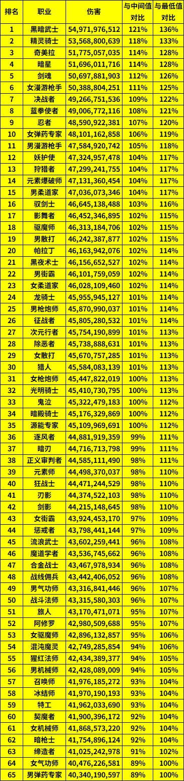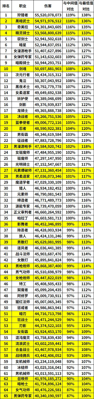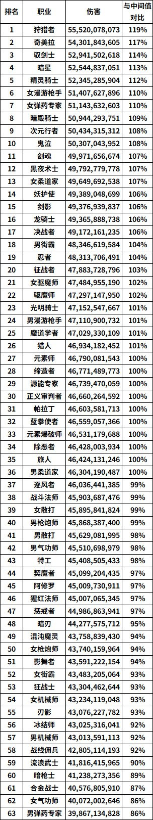 (注:迟滞净假名次中黑武与召唤师因职业均衡性问题未纳入Dundam统计 中位值为第32名的蓝拳)