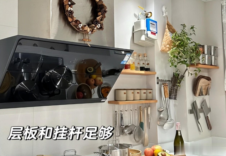 莫得吊柜还能省钱、减少家务职守,十足不错尝试下,能让厨房都整洁了一倍。