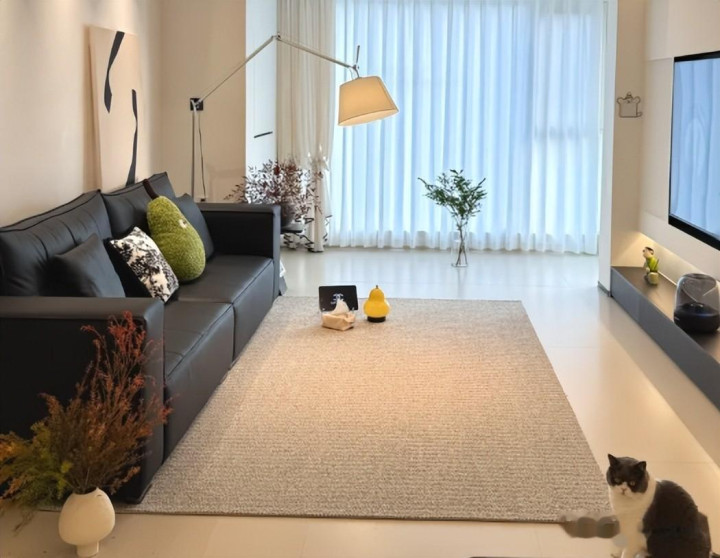 时频频我就歌咏一下,莫得茶几的客厅真好,客厅都变得更大、更通透了。