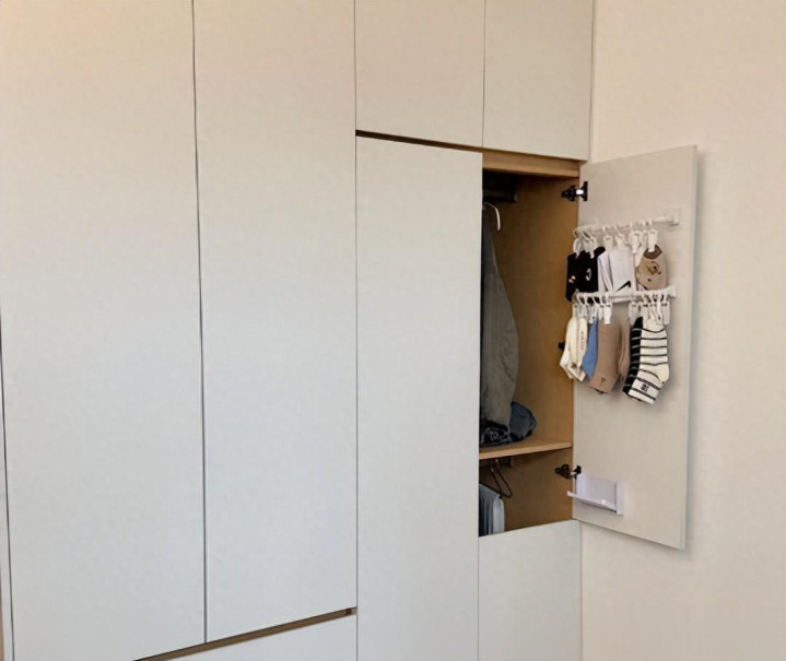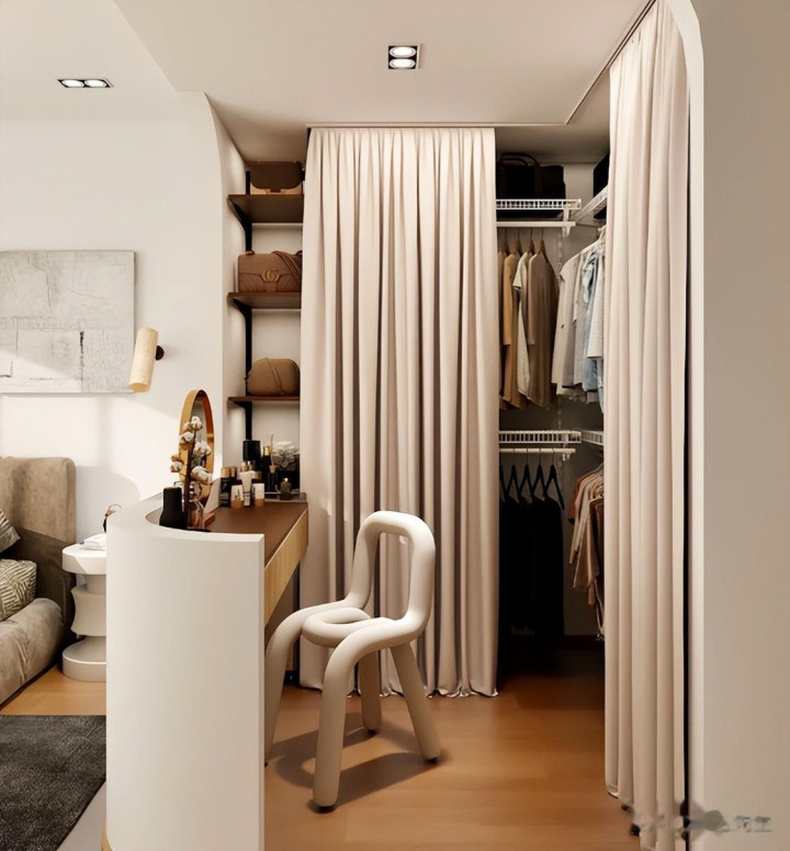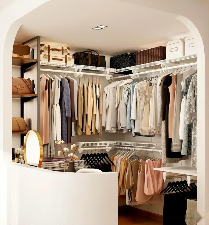 这样蓄意的地点是加多收纳空间,把总计的衣着都吊挂起来,看着整都,还莫得任何突兀的嗅觉。
