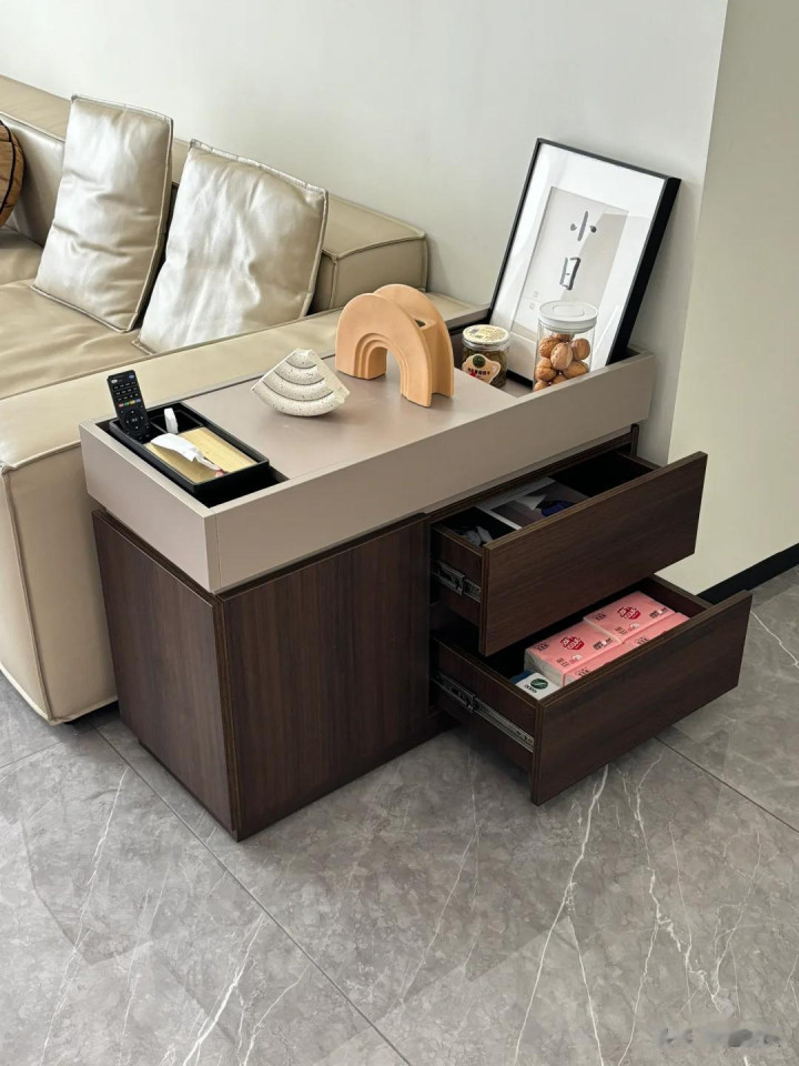 茶几上头摆放的全是凌乱的杂物,让总共客厅皆显得很乱。把这种大茶几换成小边几,不错出动,便捷使用,价钱还低廉。