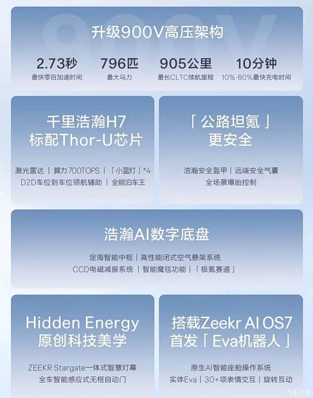 两款新车搭载35.5英寸AR-HUD+15.4英寸2.5K中控屏+13.02英寸面目屏,升级ZEEKRAIOS7系统,8295芯片加持,判辨度、功能丰富度、场景适配度全面升级,覆盖文娱、导航、车控等全场景需求。同期新车首发搭载Eva机器东谈主,澳门新浦京Eva机器东谈主将化身为实体化交互载体,上车宽待、下车谈别、叫醒心境反应、节日专属祝颂,从听教导升级为多情感互动,并带来全舱系念升级、语音领路才调升级。新车还提供无麦K歌、车外扬声器、AI音乐灯光秀等功能。